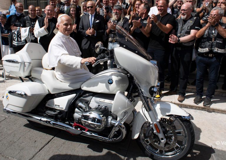 Hay historias que parecen sacadas de un guion cinematográfico por la peculiar mezcla de sus protagonistas. En el caso de esta escena: la ingeniería alemana en su máxima expresión, representada por una imponente motocicleta, se encuentra con la máxima figura de la fe católica en el corazón del Vaticano.