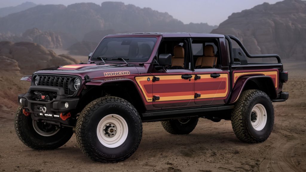 Este prototipo es una fascinante mezcla que combina la estética clásica del Jeep Honcho de finales de los 70 con piezas conceptuales y de producción de Jeep Performance Parts y accesorios de Mopar. Es un tributo que mira al pasado sin dejar de lado las capacidades y posibilidades actuales.