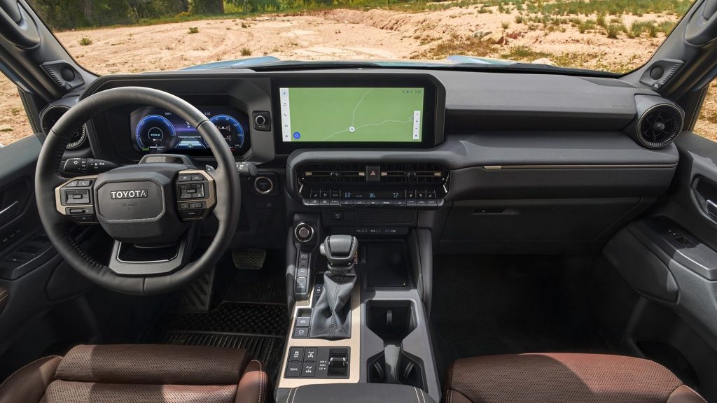 Por su parte, el grado Land Cruiser eleva la apuesta con faros LED rectangulares, asientos de SofTex con calefacción y ventilación, pantallas más grandes de 12.3 pulgadas tanto para el cuadro de instrumentos como para el sistema multimedia, y características off-road adicionales como los faros antiniebla Rigid de color seleccionable.