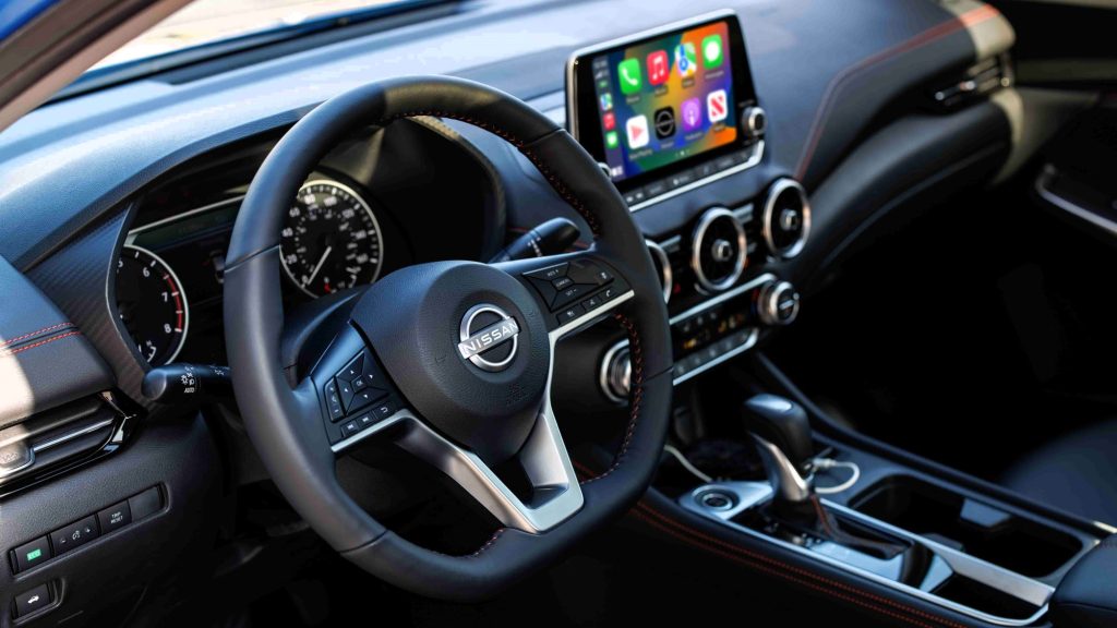 Asimismo, la tecnología es un aspecto importante en el Sentra. Viene equipado con una pantalla táctil central compatible con Apple CarPlay y Android Auto. Por consiguiente, puedes conectar tu smartphone y disfrutar de tus aplicaciones favoritas mientras conduces. El sistema de infoentretenimiento es intuitivo y fácil de usar, aunque la respuesta de la pantalla podría ser un poco más rápida en algunas ocasiones.